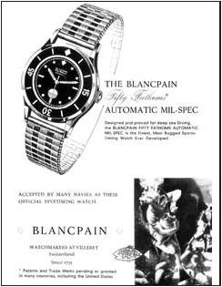 Bild: Vintage Blancpain Fifty Fathoms, um 1953 Das Genie der Fifty Fathoms wurde schnell von der Welt außerhalb der französischen Marine erkannt und wurde von den United States Navy Seals, Amerikas Elite-Taucher-Korps, und auch vom Deutschen und Israelischen Marine. Durch die Wahl der französischen GERS-Gruppe ("Unterseestudien- und Forschungsgruppe"), einem Weltmarktführer im Bereich der Unterwasserforschung, wurde auch eine friedliche Nutzung der Uhr gefunden. So trugen der legendäre Taucher Jacques Cousteau und sein Taucherteam Blancpain Fifty Fathom Uhren, als sie das preisgekrönte Bild "Le Monde du Silence" filmten. Die Fifty Fathoms definierten die Bedürfnisse der Taucher so, dass sie oft zusammen mit den anderen Tauchutensilien in Tauchläden verkauft wurden.