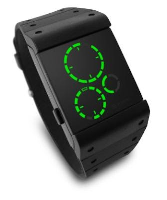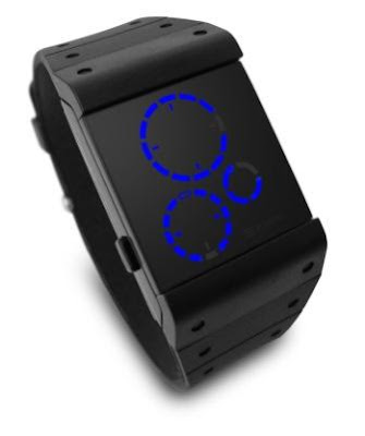 Einfach zu lesen auf einen Blick, Satelliten-Display trennt Elemente der Zeit in verschiedene Zonen. Die Stunden werden in der oberen Zone an der gleichen Stelle wie die Stunden einer Uhr angezeigt. Gruppen von fünf Minuten werden in der unteren linken Zone in der gleichen Position wie die Minuten einer Uhr angezeigt und in der unteren rechten Zone werden vier einzelne Minuten angezeigt.